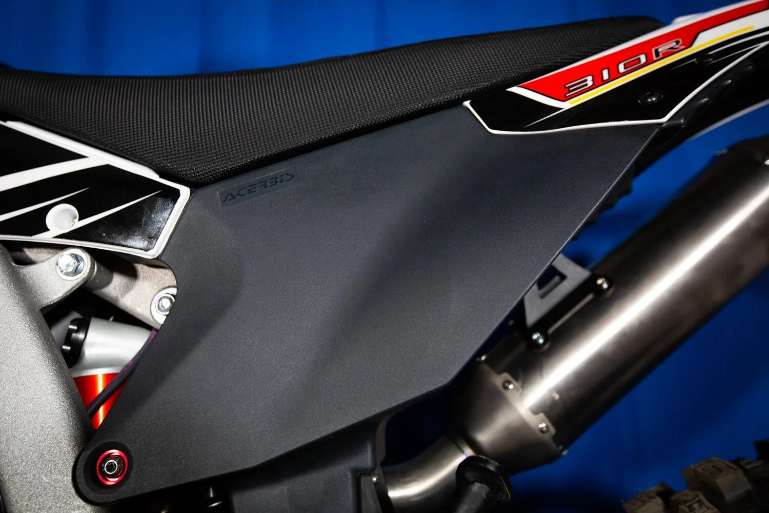 And SPR310R’s fit and finish are also top-notch. We included a cooling fan, high-impact plastic skid plate, billet footpegs, stout handguards, and a digital dashboard/enduro computer to round out this impressive enduro weapon. All this bike is missing is a rider!